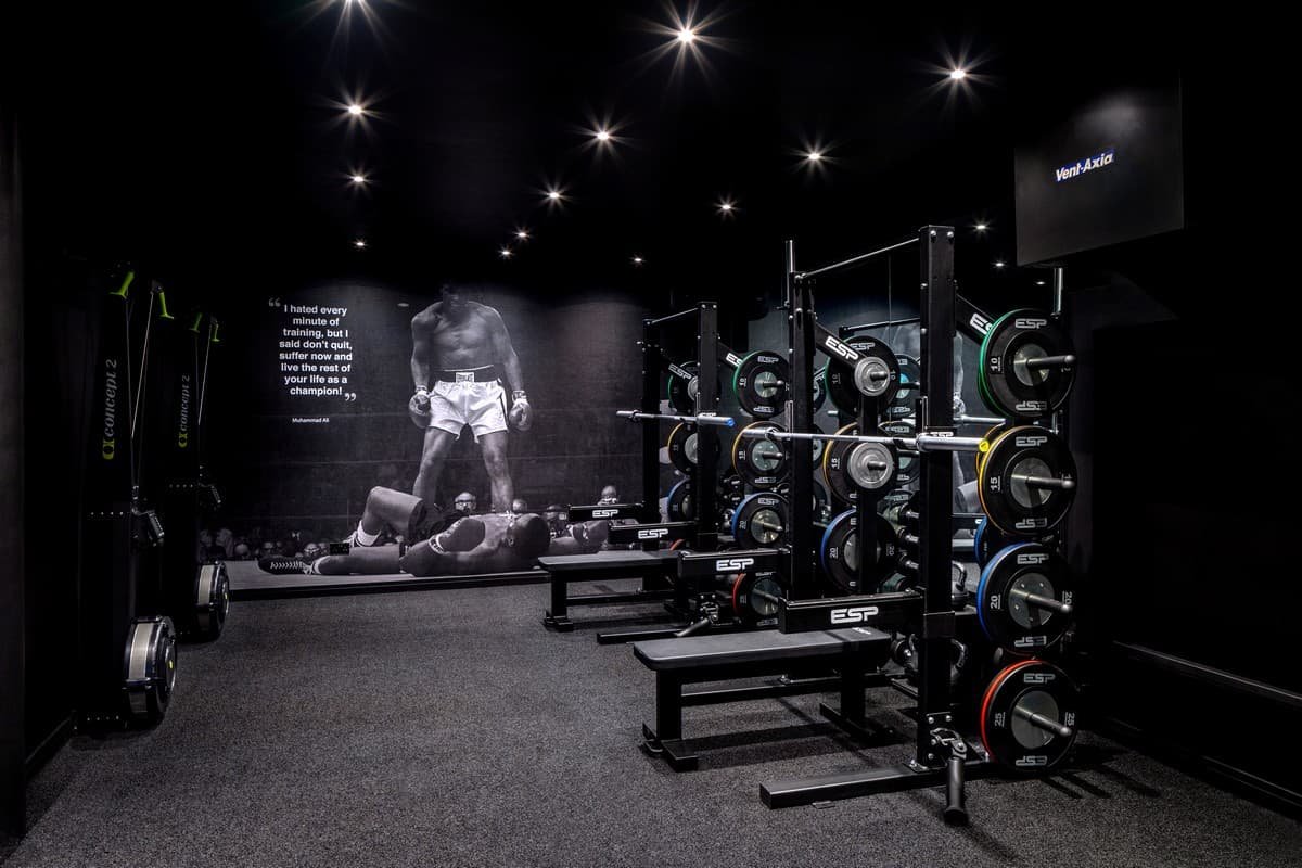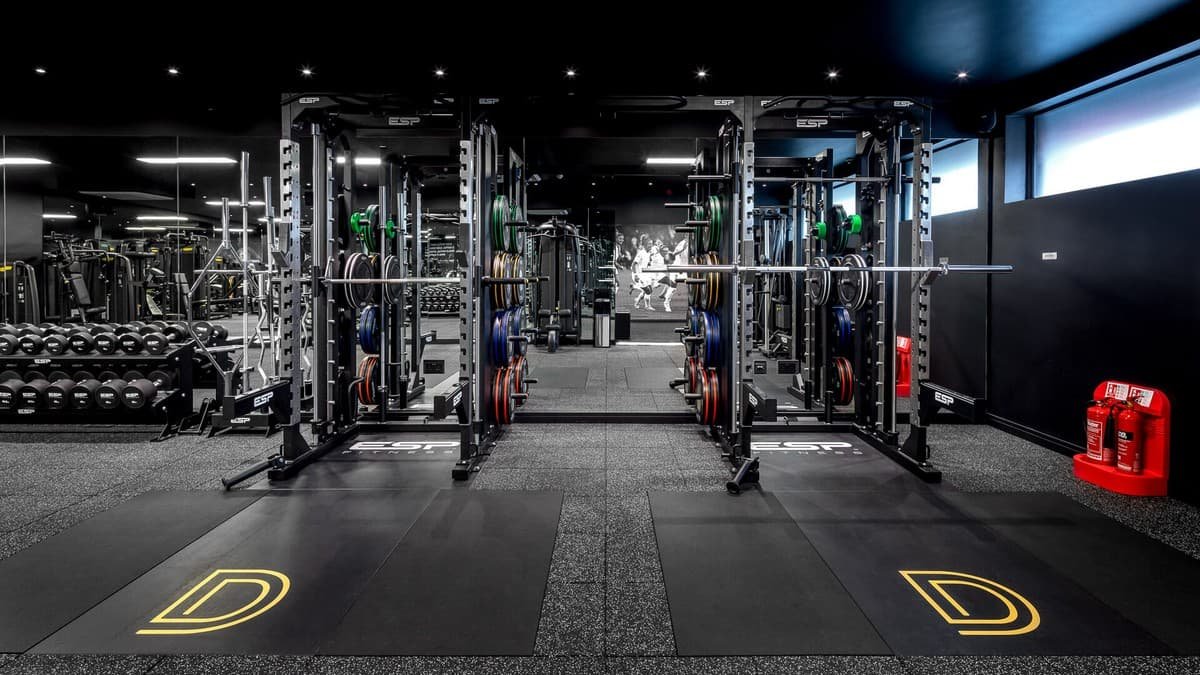 Queens Park is the flagship fitness centre for the DropGym group. This unique high performance fitness concept has been designed and developed by ESP to package high performance wellness as accessible and commercially viable. This gym is for serious training with an inspirational look and feel, high-performance equipment, custom branded Weight Lifting Platforms and weights. The anthracite black walls with strategically positioned mirrors, grey speckled flooring, white lighting and world class athlete imagery on all the walls, together with world class fitness equipment fosters an inspirational environment.